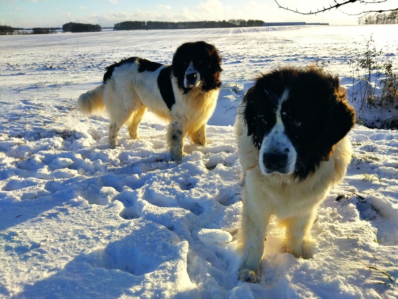 unsere Landseer bei der Apfelernte